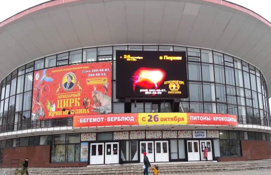 Пример рекламы на мониторе в цирке: